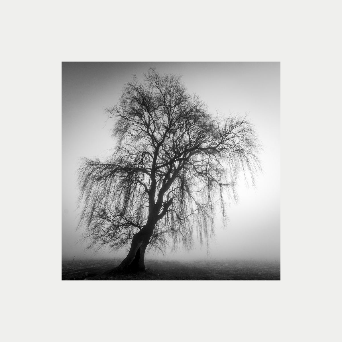 Invierno en lerma , una neblina tremenda que hace emerger a este sauce lloron del frio intenso del invierno ,que lo ha despojado de sus hojas. Mustrando su majestuosidad en el terreno.