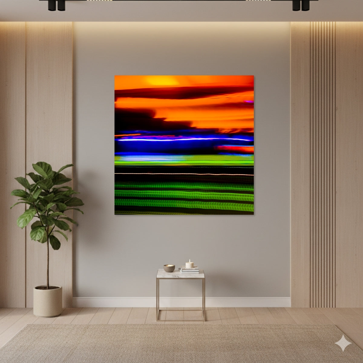 El acabado en acrílico ofrece una presentación moderna y nítida. La fotografía se monta detrás de una lámina acrílica transparente que aumenta la profundidad y el contraste, dando como resultado una imagen más luminosa y definida. Su superficie brillante y totalmente lisa aporta un aspecto limpio y contemporáneo, adecuado para piezas que buscan presencia visual en espacios actuales.
