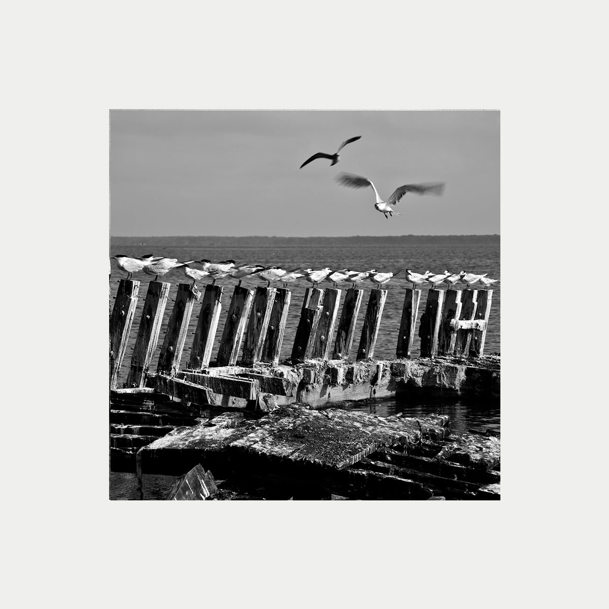 El viento y las oportunidades de descanzar no perdonan a este esqueleto de barco ,para que las aves se posen en el, aqui las aves se colocan contra el viento , para ofrecer menos resistencia .. Un porta aviones natural.